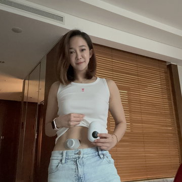 Attach the controllers to the hydrogel patches and store the protective film in the Pod Pro case. Place the patches on your lower abdomen or lower back, targeting the areas where you feel the most intense cramps.
